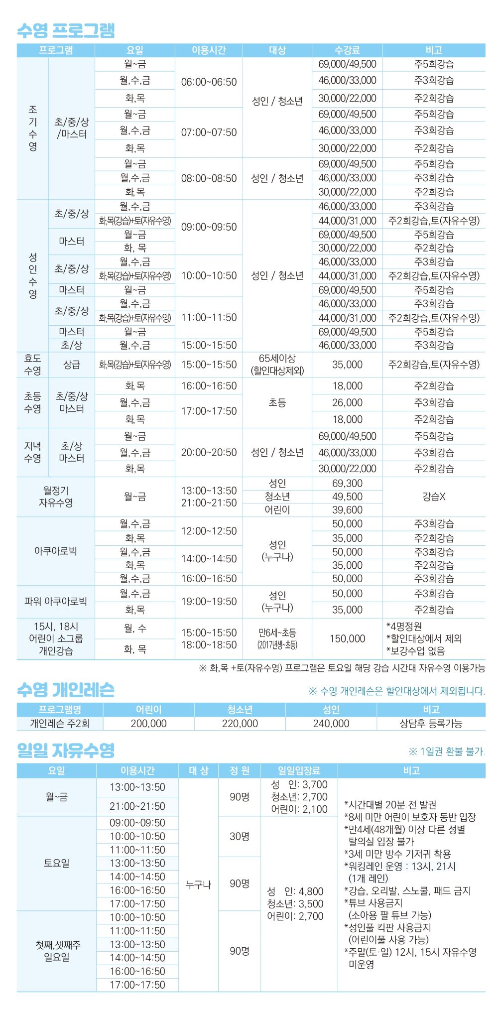 센터이용 수영프로그램 작성자 : 동대문관리자 조회 : 1,526 등록일시 : 2022년 10월 6일 9시 27분 3초 2023가을전단지 통합2.jpg [ Size : 337.27KB, Down : 190 ] 미리보기 다운로드 목록보기