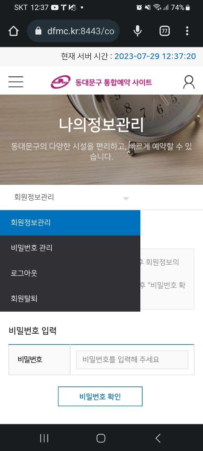 나의정보관리-회원정보관리-회원탈퇴-비밀번호 입력후 회원탈퇴