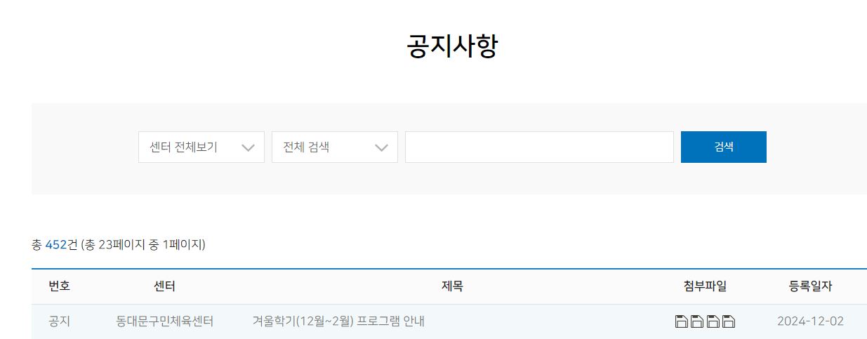 [Re] 동대문구민체육센터 프로그램은 어디서 조회가능한가요?