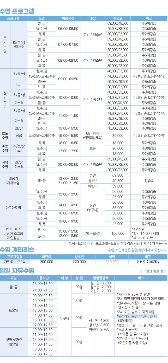 수영 신규 등록 기간은 매달 25일~말 일이고