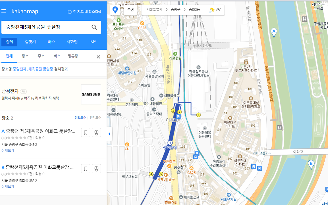 2. 서울 중랑구 중화동 382-2 (이화교 기준 남쪽)